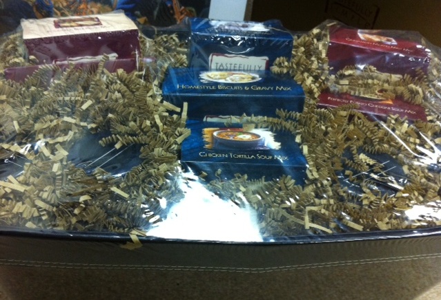 The ultimate gift to yourself, or to pass along to someone else! Featuring a deluxe assortment of Tastefully Simple products for breakfast, lunch and dinner. This fabulous gift is the perfect way to Share the Love. Package comes complete with a beautiful oblong storage tote featuring luxurious tweed and faux-leather trim. The Share the Love basket has a low-country feel to it, including bountiful beer bread mix, homestyle biscuits and gravy, Wahoo! Chili and much more!