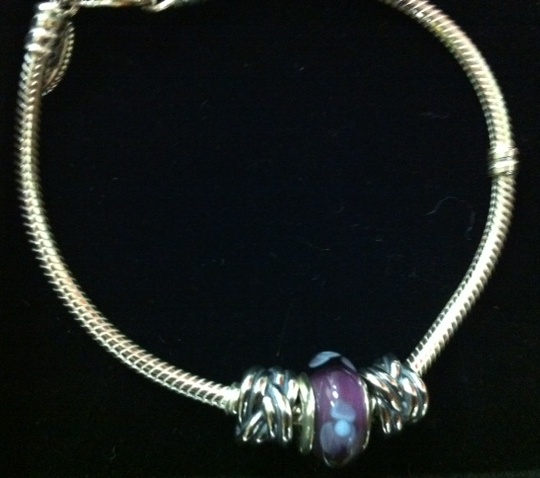 Need a holiday gift idea for your favorite gal? Make sure you grab this silver Pandora bracelet with three charms. One of the year's hottest accessories!
